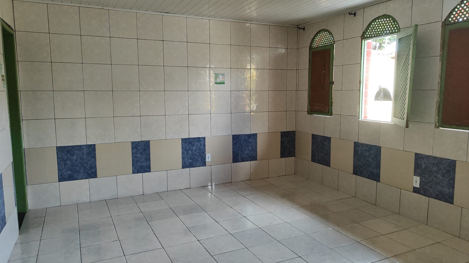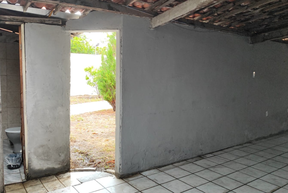 Dois quartos, uma suíte, um banheiro social, sala principal, sala de jantar e cozinha área na frente e área no fundo. Além de garagem