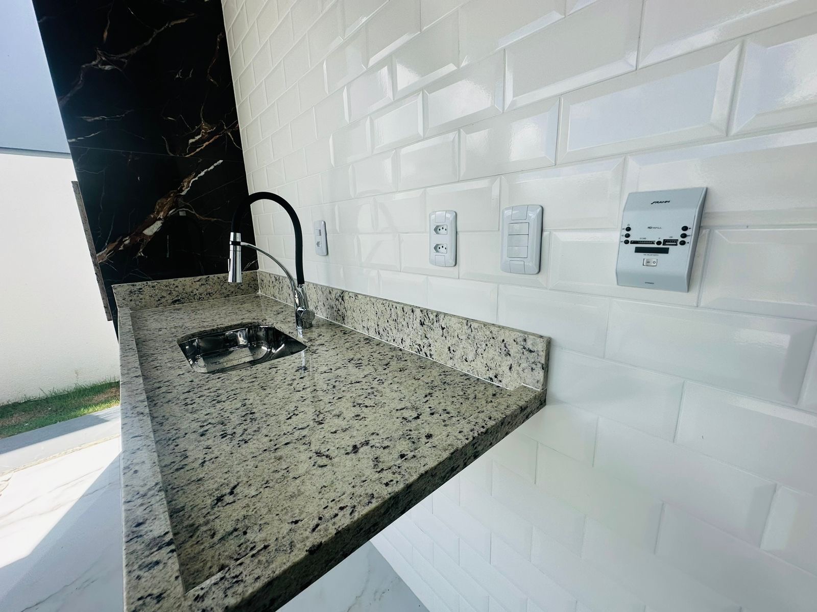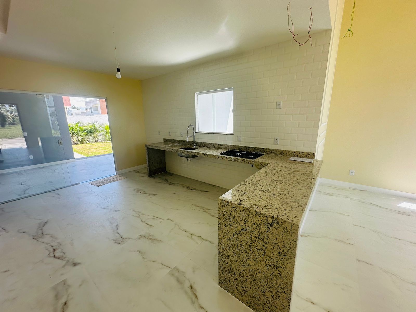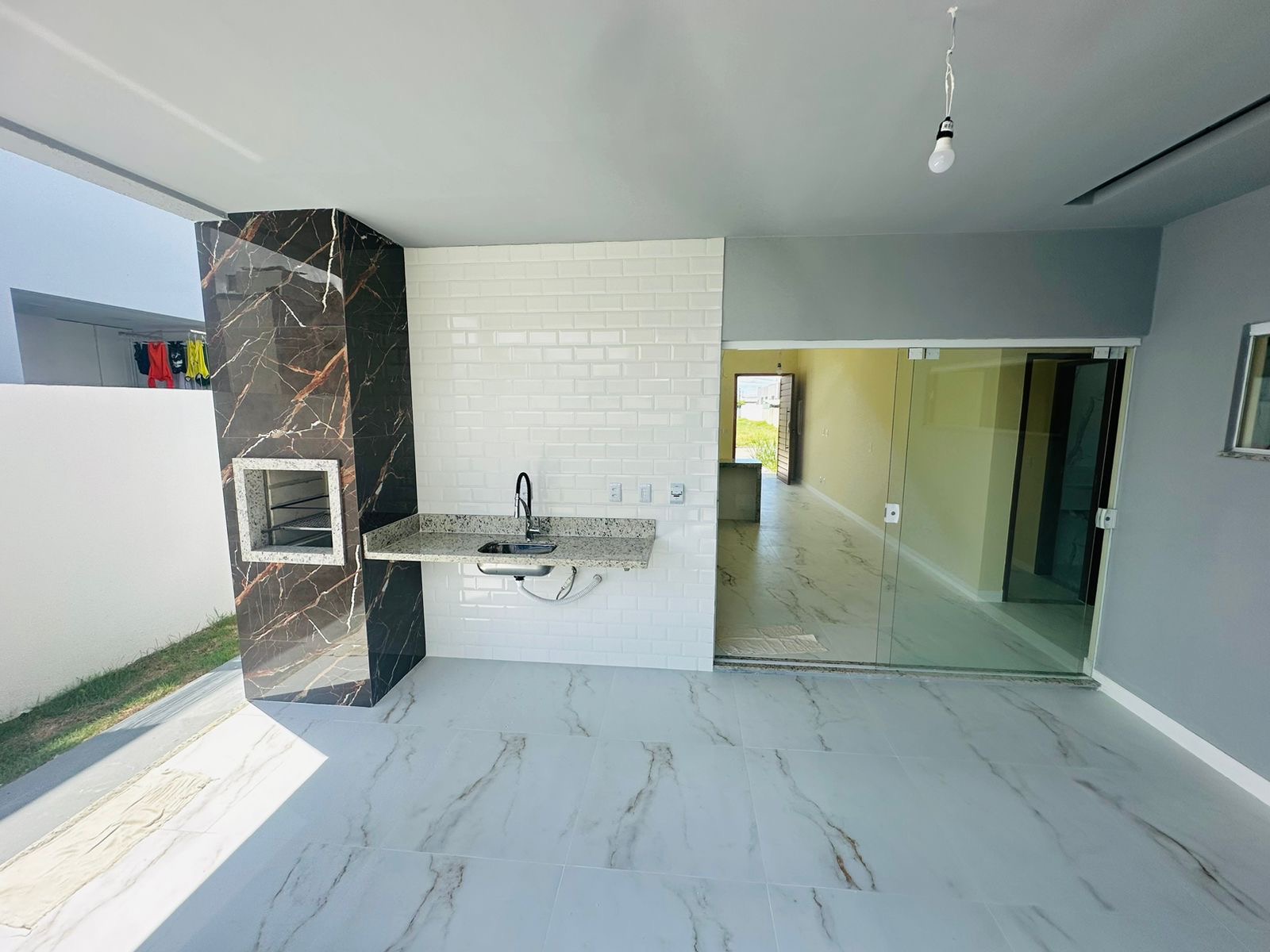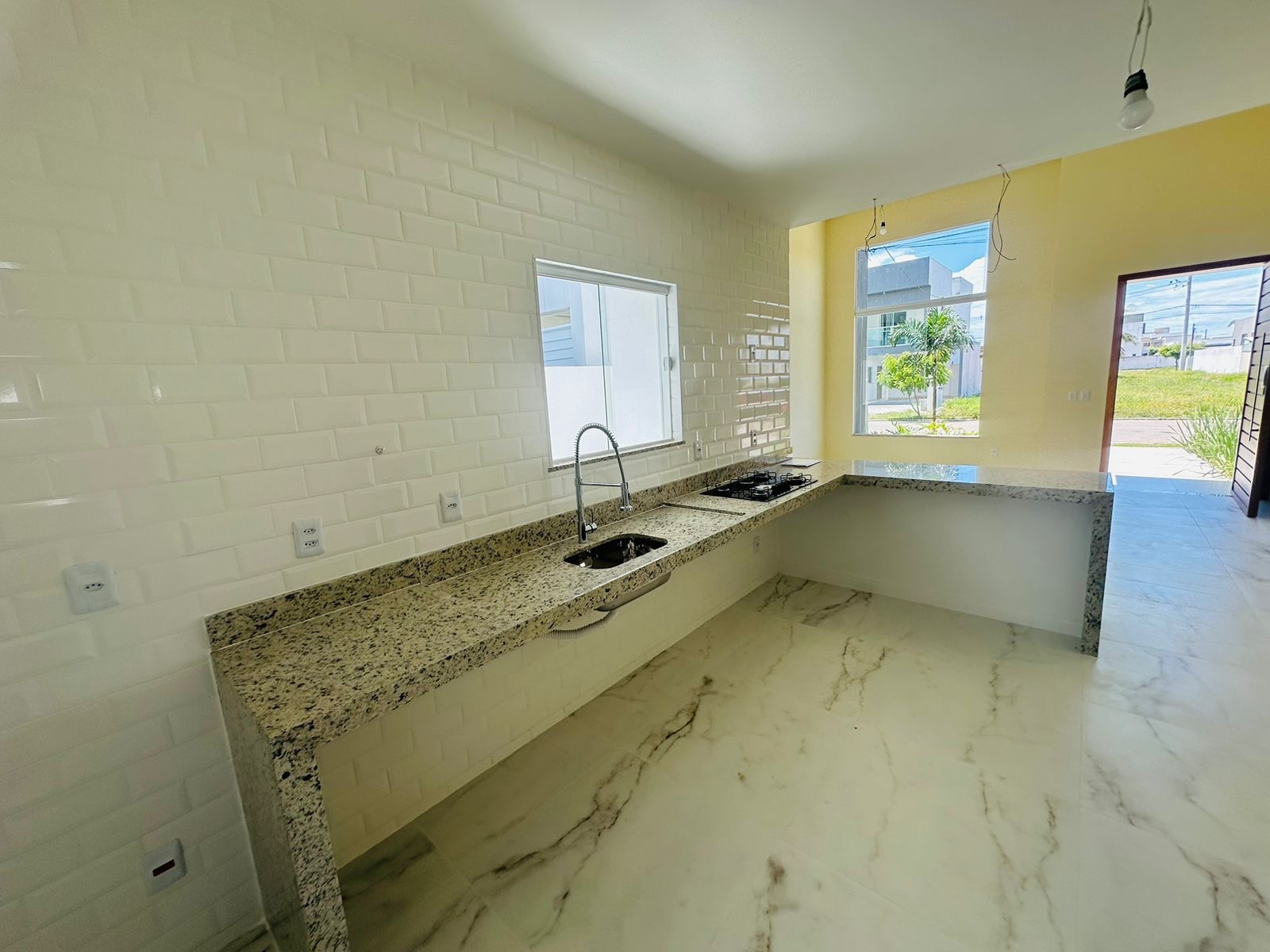 – ⁠Fino acabamento com pias esculpidas, piso em porcelanato, revestimentos em calacata