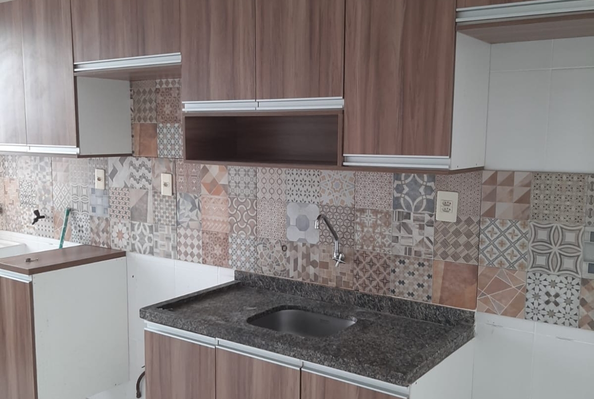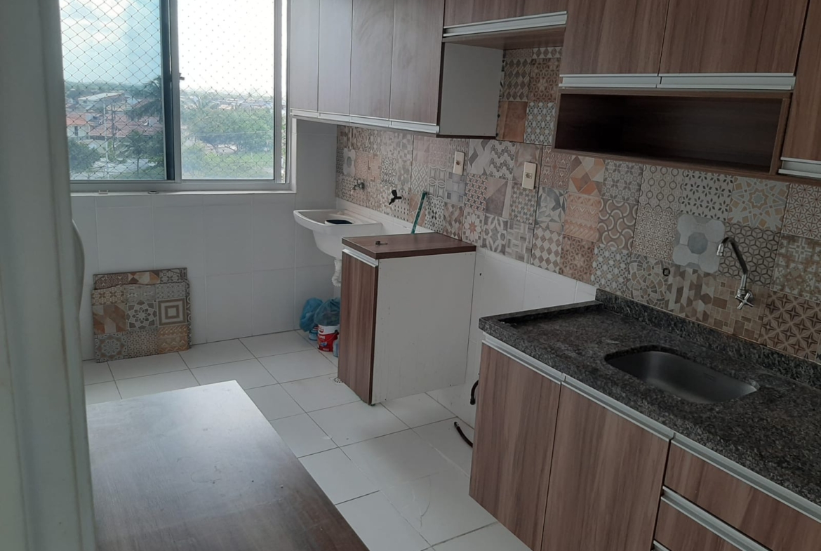 3 quartos sendo 1 com suite 80 m banheiro com box cozinha com moveis planejados Tem aquela Janela na varanda que chamam de Reiki, daí fica a sala mais ampla. Sala em dois ambiente com Espelho e ventilador de teto